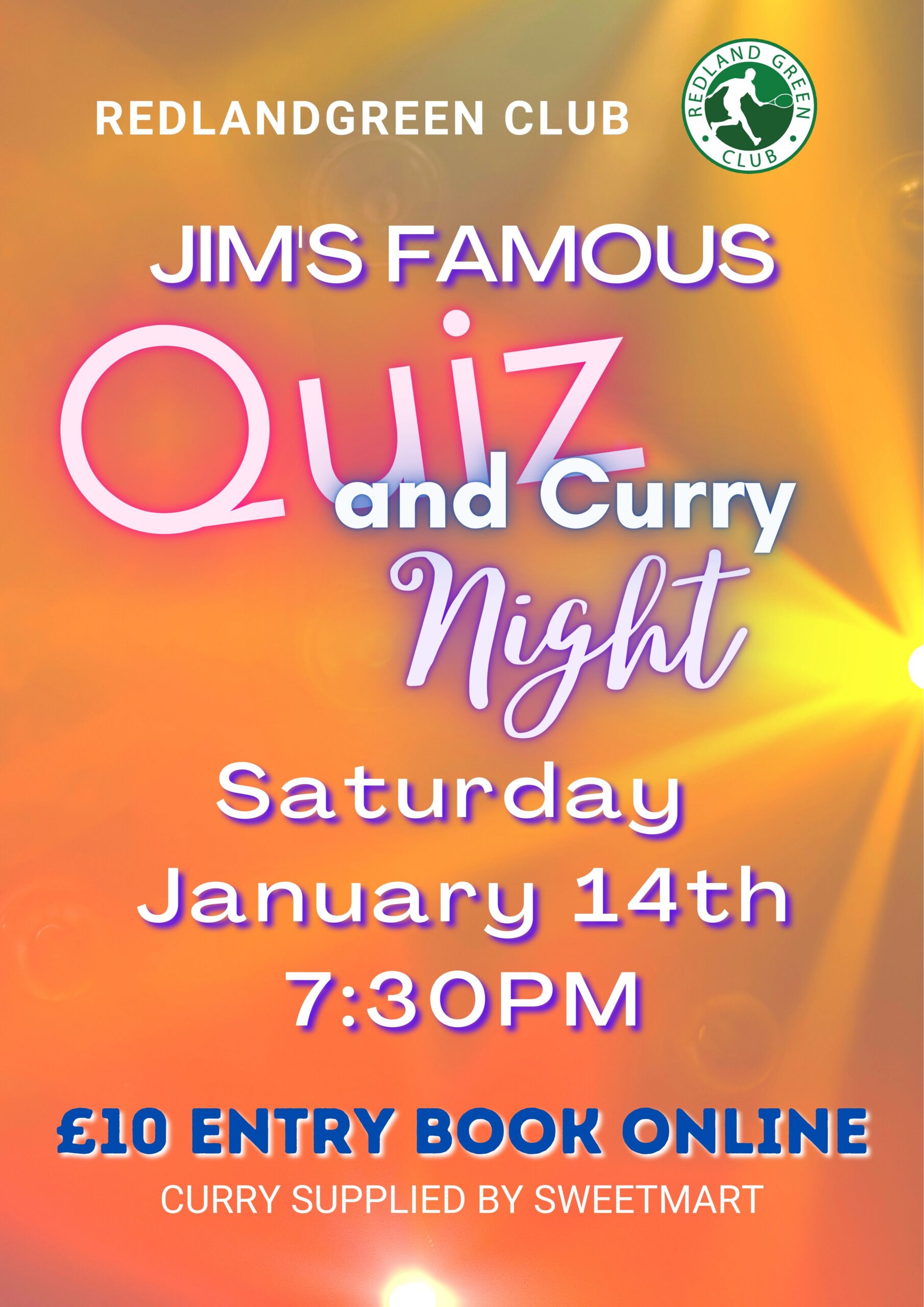 The dark nights are back and so are our quizzes. This time it comes with a curry from the Sweetmart. Saturday October 8th 2022 7.30pm start.